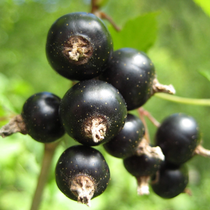 | Плоды | Ягоды крупные (1,2 - 1,5 г), округлые, с наплывом у цветоножки, интенсивно-черные с желтыми точками, блестящие. |