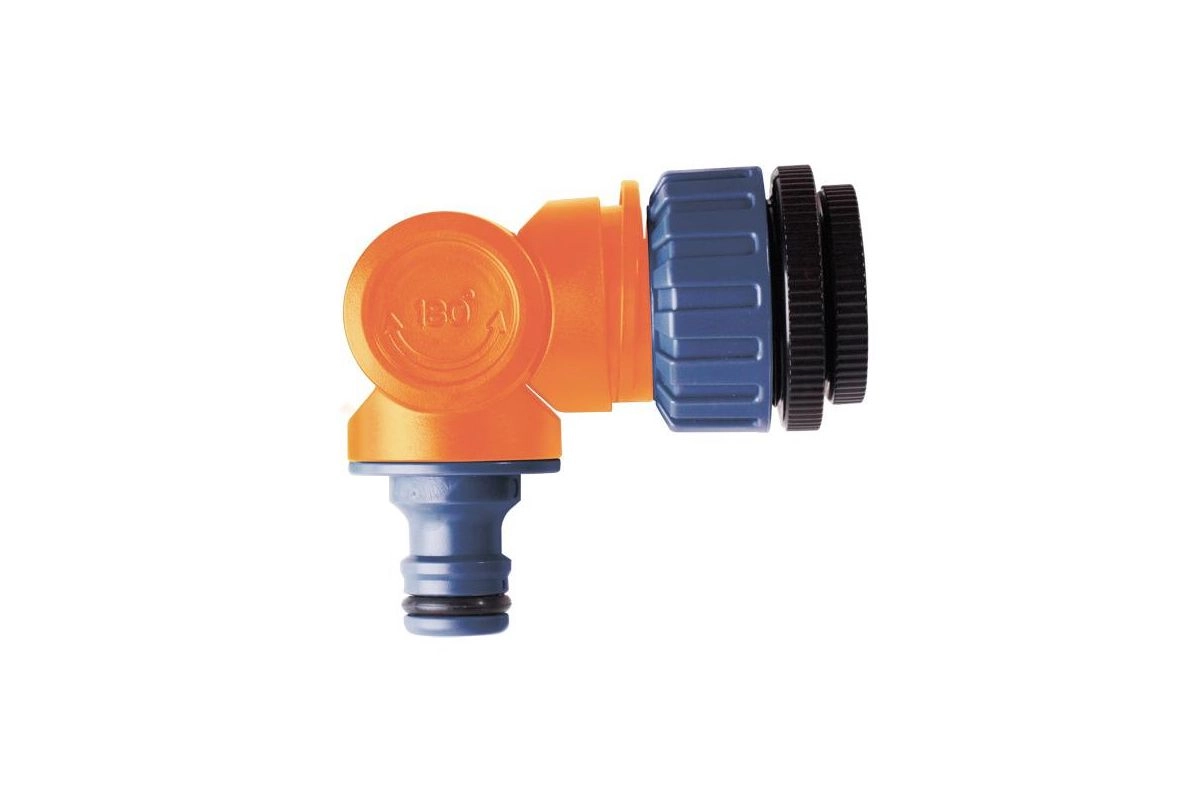 Угловой адаптер предназначен для подключения садовых шлангов к резьбовому крану. Надежное шарнирное соединение обеспечивает регулировку в диапазоне до 180°, что предотвращает перекручивание и перегиб шланга.