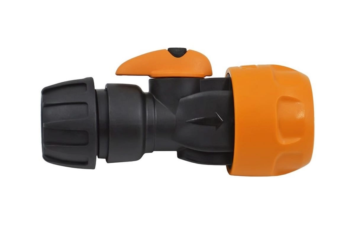 Коннектор установленный на конце шланга может регулировать поток воды, подаваемый в дождеватель или поливочный пистолет.