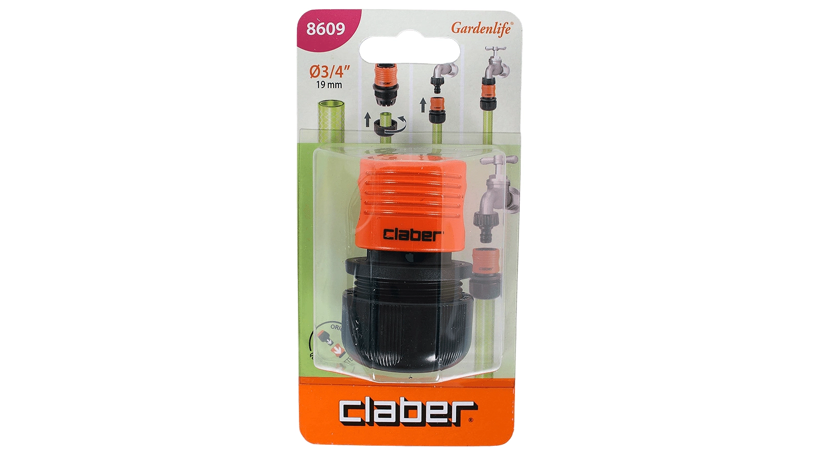 Коннектор Claber 3/4” полностью защищен от ржавчины (так как не имеет металлических частей), ударопрочен, устойчив к элементам, ультрафиолетовому излучению и очень высокому давлению воды: до 40 бар, что намного выше обычного уровня в домашнем садоводстве. Запатентованная внутренняя пружина Claber чрезвычайно прочная и долговечная.