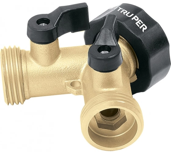 Распределитель двухканальный с внешней резьбой на разветвлениях диаметром 3 4” изготовлен из латуни. На посадке внутренняя резьба диаметром 3 4”. Применяется для подключения одновременно двух водопроводных линий. Напор воды регулируется кранами.