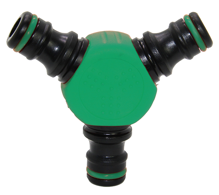 Тройник применяется для разветвления шлангов, что значительно экономит время при поливке садового или придомового участка.