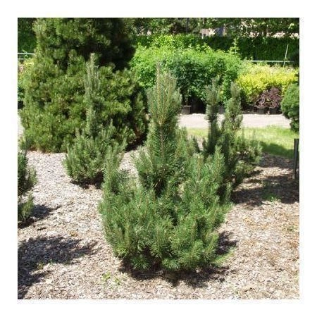 Высота и диаметр кроны до 3 м. Растет медленно. Крона распростертая, стелющаяся, побеги различной длины, плотно расположены, ветки направлены вверх. Хвоя короткая, темно-зеленая, густая, жесткая. Светолюбива, но более вынослива, чем сосна обыкновенная. К почве малотребовательная, переносит уплотнение, рекомендуется известкование почвы. Одиночные посадки, групповые посадки, Для каменистых садов. Морозостойкость высокая.