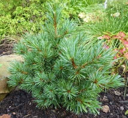 Высота в 10лет в пределах 60 см, ширина в пределах 40см. Годичный прирост 4-6см. Прекрасная разновидность японской белоснежной сосны с неспешным подъемом. Иглы - длинноватые, серебристо-голубоватые, немного скрученные и мягкие на ощупь. Сформирует нерегулярный густой кустарник пирамидальной или же колоновидной формы. Почва влажная, хорошо дренированная. Можно высаживать в каменистых садах, хорошо переносит соленые почвы. В условиях средней полосы России выдерживает морозы до минус 30° С. Вересковые и японские сады.