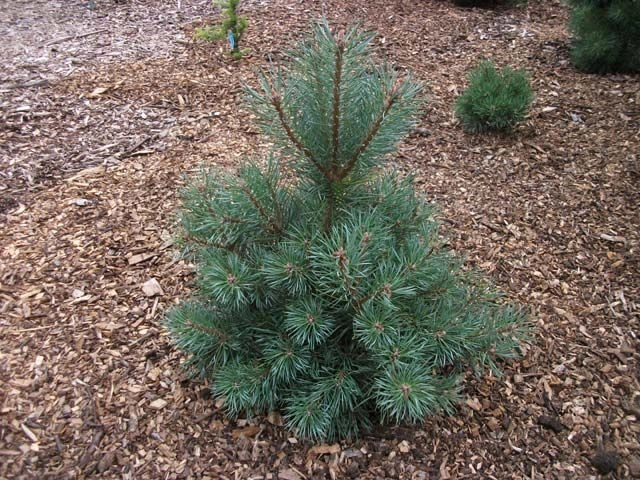 Карликовое или полу-карликовое дерево. Высота 1,5 м, ширина кроны до 1 м. Крона- округлая или коническая, часто нерегулярной формы. Побеги коричневые, вертикальные. Хвоя длинная, насыщенно голубого цвета. Ежегодный прирост около 7см. Высота в 10 лет 0,7 м.