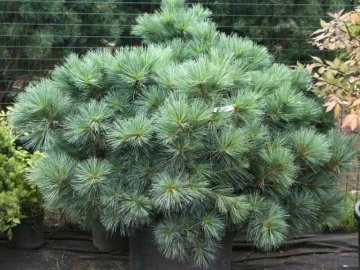 Высота 1,2 м, диаметр 1,5 м. Темп прироста медленный 4-5 см. Форма кроны: шаровидная. Хвоя мягкая, тонкая, длинная, синие-зеленая. Будет расти и стабильно развиваться на хорошо освещенном участке, но вполне неплохо будет себя чувствовать и в редкой тени. Лучше растет на влажных, плодородных, дренированных почвах. Не требовательна к кислотности почвы. Зона морозостойкости (USDA) 3 (от -40° до -34°).