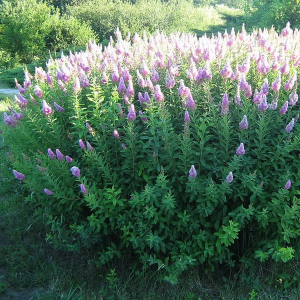 Высота до 2 м. Цветет во второй половине лета до заморозков розовыми метелковидными соцветиями. Этот кустарник теневынослив, но лучше цветет на солнечных местах. Морозоустойчива. Грунт для спиреи должен быть в меру плодородным, состоящим из дерновой земли, торфа и речного песка. Важен хороший дренаж, предотвращающий застой влаги у корней.