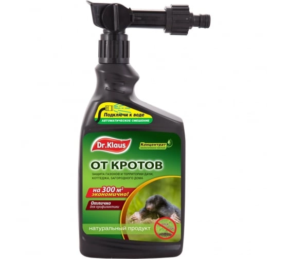 Эжектор концентрат от кротов Dr.Klaus 1л применяется на приусадебных участках загородных домов и дач с целью отпугивания кротов и защиты газона.