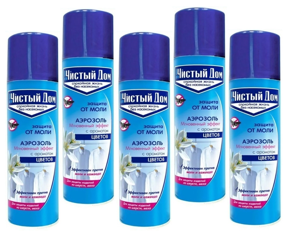 Аэрозоль Чистый дом 300 мл обеспечивает защиту вещей от моли