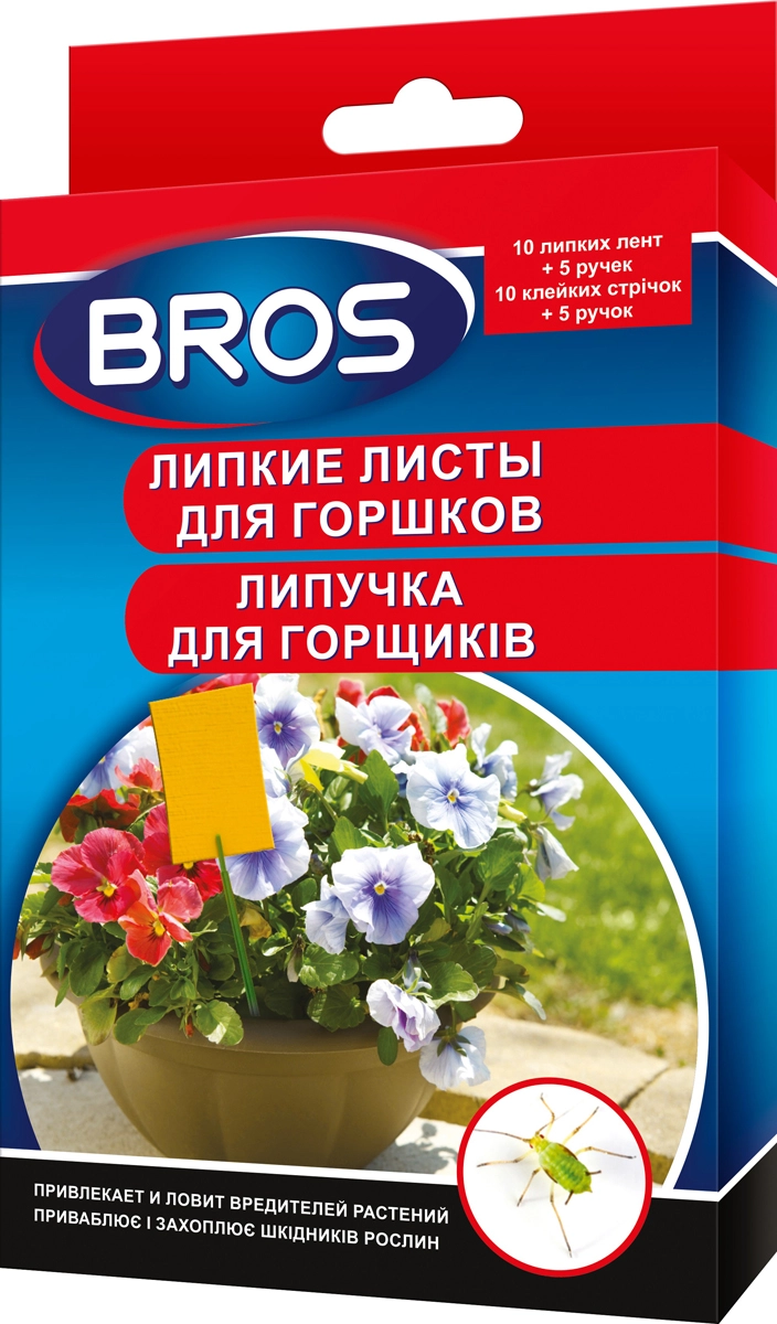 Bros (Брос) эффективная липкая полоска .Установите ловушку в местах обитания насекомых, непосредственно в горшок с цветами.