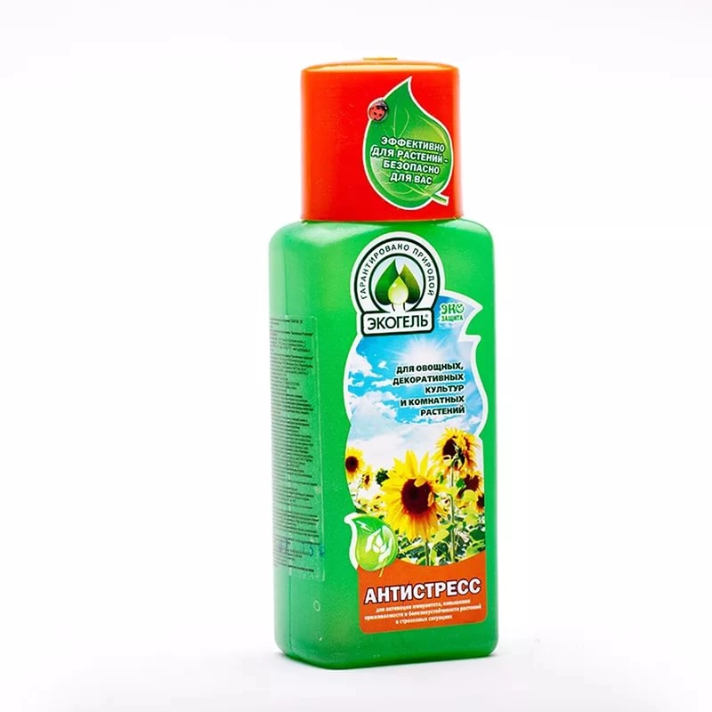 «Экогель» снимает стресс после пересадки растений или транспортировки, пестицидных обработок; средство «Антистресс» помогает справиться с резкими сезонными перепадами температуры, подсушиванием, повреждением растений болезнями и вредителями; улучшает приживаемость пересаженных растений.