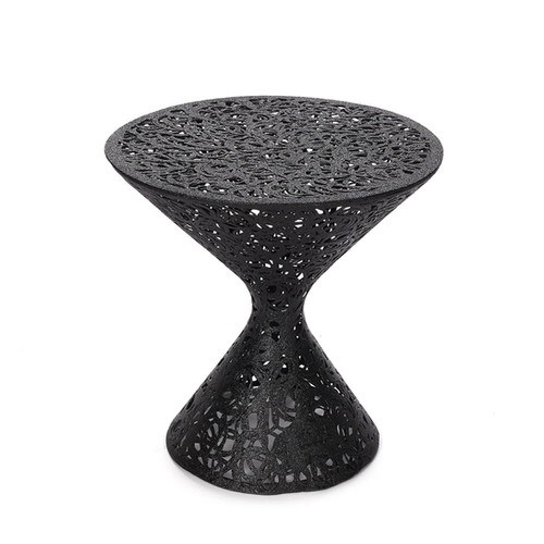 Изделие полое внутри. Его можно легко переставлять с места на место. Этот материал не боится перепадов температуры, влажности. Четный матовый цвет не пачкается, поэтому столик может находиться под открытым небом круглый год