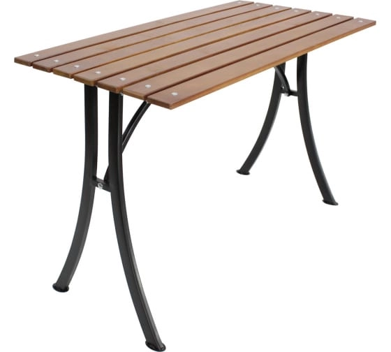 Имеет простой и в то же время стильный дизайн, который подходит для загородных участков. Столешница выполнена из дерева и позволяет устроиться на прием пищи небольшой компании. Стальной каркас выдерживает значительные нагрузки.