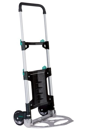 Wolfcraft TS 300 - невероятно компактная, но при этом очень прочная тележка с максимальной грузоподъемностью 30 кг. Весит всего 3 кг, толщина в сложенном виде - 60 мм, почти не требует места в багажнике. Бесступенчатая система складывания, максимальная высота - 90 см.