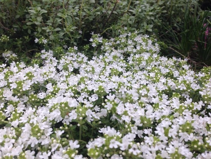 многолетние низкорослое растение из семейства Яснотковые. В естественной среде произрастает в большинстве стран Европы, Северной Африке и Азии. Стелящееся почвопокровное растение достигает высоты до 10 сантиметров. Мелкие зеленые листья имеют яйцевидную или округлую форму. Весьма вынослив, засухоустойчив. Растет в легкой, плодородной, хорошо дренированной почве. Не выносит застоя воды и большого количества влаги, это ведет к гниению, зато с легкостью переносит засуху и отсутствие удобрений. Полив рекомендуется производить только в особенно жаркое время. Размножается делением куста, семенами или черенкованием. В саду тимьяном можно украшать дорожки, миксбордеры или альпинарии. Особенно великолепно смотрится при своевременной регулярной обрезке, образуя плотный зеленый ковер.