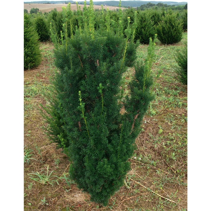 У тиса крона пышная, плотная, ширококолонновидной формы. Сильные узкопирамидальные ветви устремлены вверх под острым углом. Побеги густо покрыты радиально ориентированной хвоей. Форма хвоинок линейно-игловидная, заостренная, размер иголок 2,5-3 см. Цвет хвои насыщенно-зеленый с блестящим изумрудным отливом. Растет куст умеренно быстро, прибавляя ежегодно по 15 см в высоту и 10 см в ширину. Средние объемы взрослого растения 3-52-3 м. Живет больше 1000 лет.