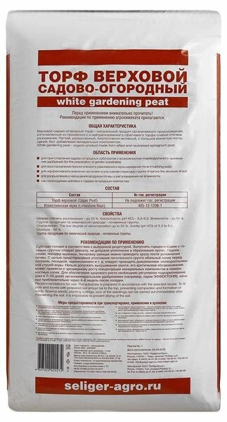 Торф верховой СЕЛИГЕР-АГРО садово-огородный – незаменим для приготовления садово-огородных субстратов, разрыхления и насыщения воздухом почвы. Легкий, раскисленный, биологически активный, без добавления минеральных удобрений.