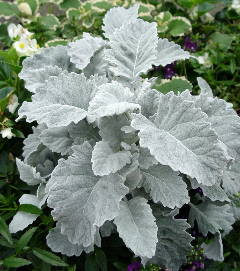 Высота 15 - 30 см. Благодаря своим листьям с серебристо-белым опушением цинерария широко используется в цветоводстве для обрамления клумб и в качестве фона для других растений контрастной окраски.