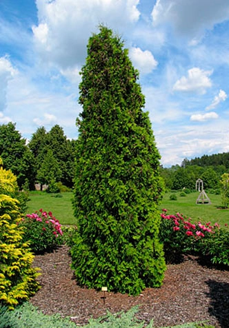 Высота, м : до 15 м, диаметр, м : до 3. Размеры к 10 годам3 м. Годовой прирост25-30 см. Хвоя расположена супротивно, ярко-зеленая, пестролистная. Форма кроны, колонновидная. Плотность кроны у молодого дерева – плотная, у взрослого, более рыхлая. Хорошо себя чувствует как на солнце, так и в тени. Предпочитает хорошо увлажненные питательные почвы. Кислотность почвы, нейтральная. На солнце не горит. Зона морозостойкости (USDA) 4 (от -34° до -29°). Используется в одиночных и групповых посадках, для создания живой изгороди.