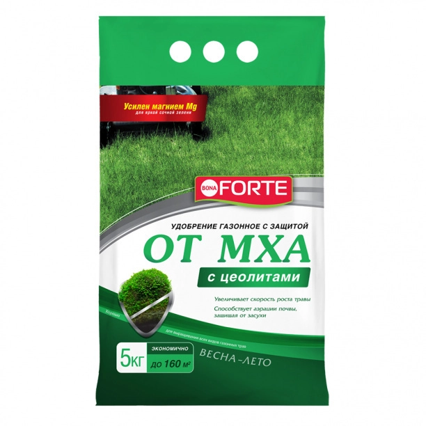 Удобрение газонное Bona Forte с цеолитами с защитой от МХА 5кг/3л