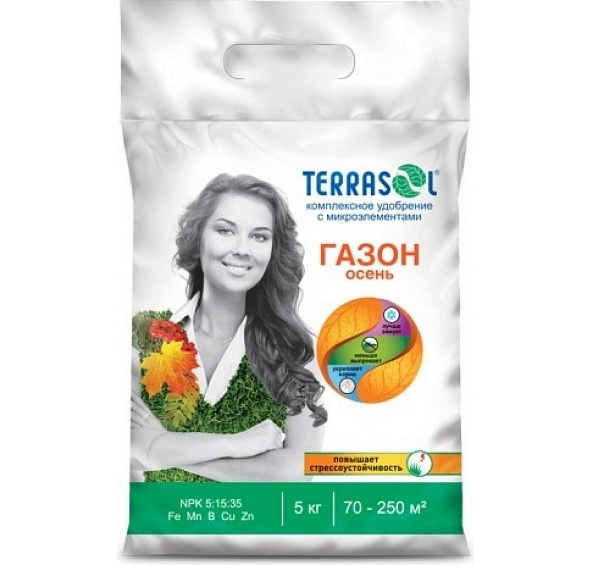 Удобрение газонное минерал. сухое Terrasol тукосмесь с микроэлементами Осень 5кг