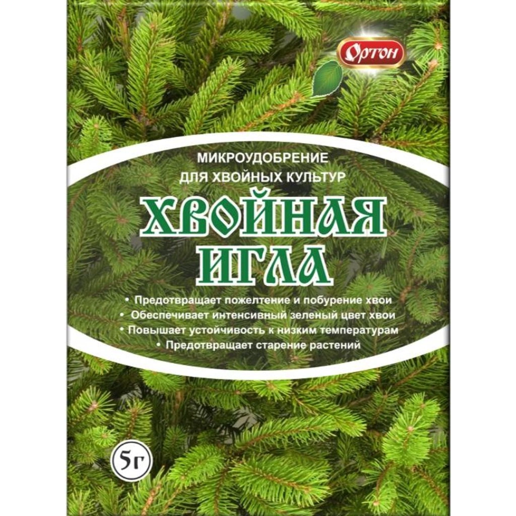 Хвойная игла - микроудобрение для личных подсобных хозяйств предназначено для некорневых и корневых подкормок хвойных культур (ель, сосна, можжевельник, туя и др,). Устраняет дефицит микроэлементов, пожелтение и побурение хвои, повышает устойчивость к низким температурам, заболеваниям, вызванным недостатком какого-либо микроэлемента.