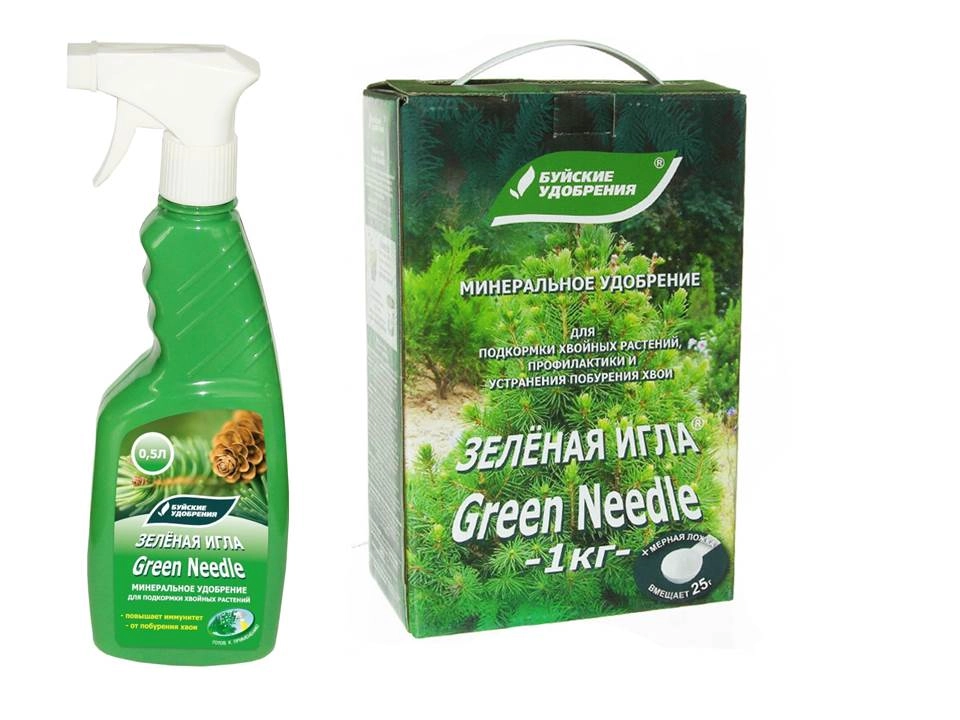 Минеральное удобрение «Зеленая игла» — специализированное средство для подкормки хвойных растений. Применяется для профилактики и устранения побурения хвои, вызванного дефицитом магния в почве. Средство равномерно распределяют по поверхности приствольных кругов деревьев и кустарников или вносят непосредственно в верхний слой почвы. Рекомендуют применять удобрение дважды в год: в начале активной вегетации и летом. При проявлениях побурения хвои необходимо вносить средство один раз в 3-4 недели.