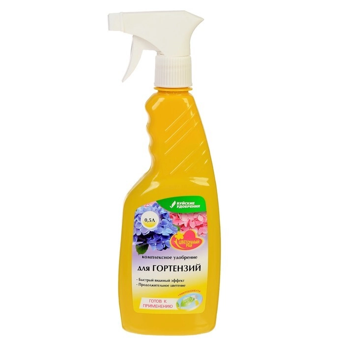 Быстродействующее комплексное удобрение предназначено для питания гортензий. Полностью готово к применению.