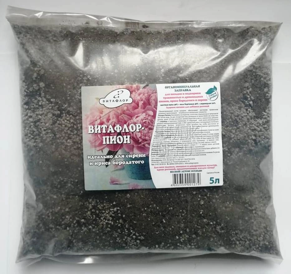 Удобрение сухое Витафлор Пион органоминеральное является сбалансированной подкормкой, использующейся при выращивании травянистых и древовидных пионов и других цветов. Понижает кислотность почвы, улучшает структуру и плодородие почвы.