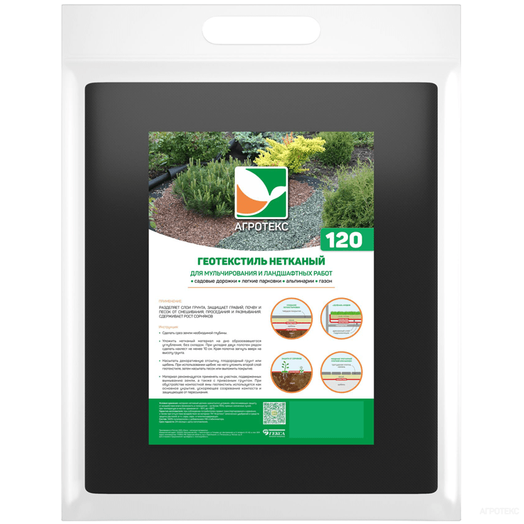 Создан для применения в аграрной сфере и ландшафтного дизайна. Его применение позволяет реже восстанавливать слой плодовой земли или декоративной отсыпки, снижает частоту проведения ремонта садовых дорожек. Альпинариев и газонов. Этот вид геотекстиля используется: