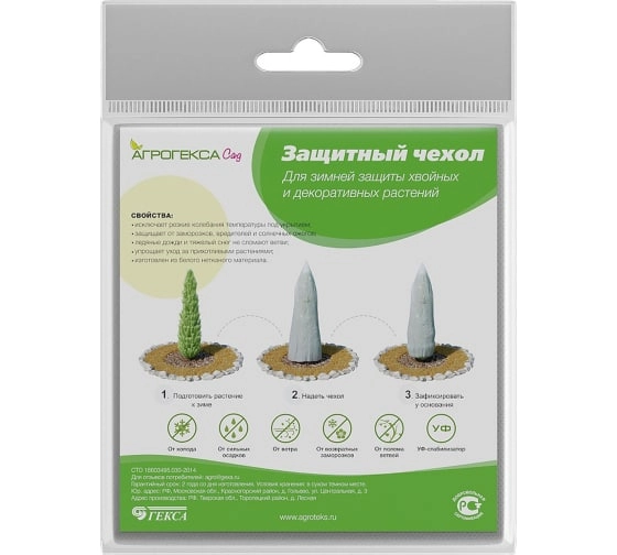 Чехол используется для хвойных декоративных растений и цветов, предназначен для защиты от заморозков, ранних оттепелей, насекомых и механических повреждений, не нарушая при этом естественный покой растения. Защищает от весенних заморозков, защищает от любых резких колебаний температур;