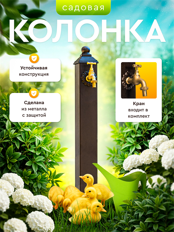 Подходит для мытья фруктов, овощей, рук, посуды. Дополнит природный пейзаж участка.