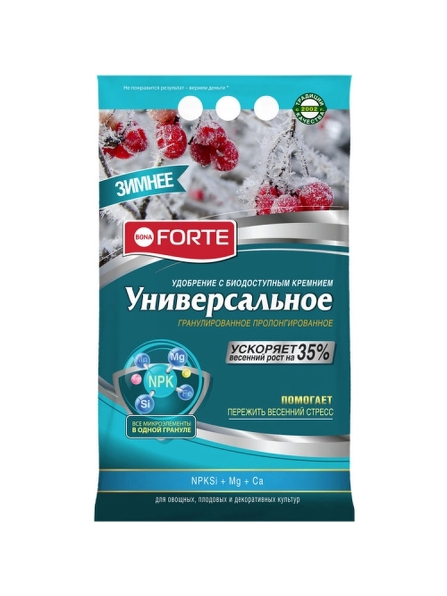 Минеральное удобрение с биодоступным кремнием. Ускоряет весенний рост на 35%. Можно вносить по снегу. Способствует получению более раннего урожая.