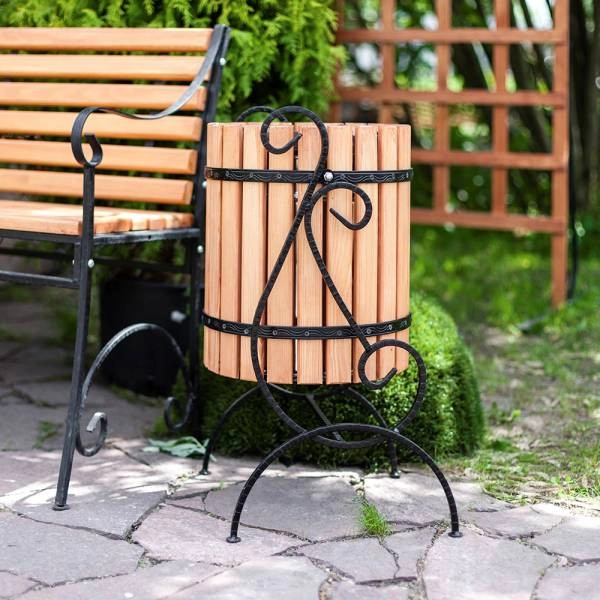 Подходит для размещения как на садовом участке, так и в парковых зонах, местах общего пользования. Урна крепкая, устойчивая.