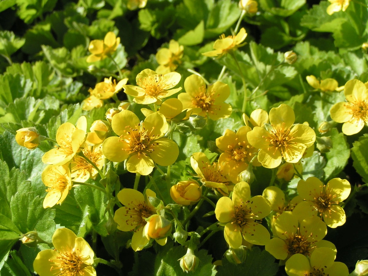 Вальдштейния тройчатая - это низкорослый стелющийся травяной многолетник, образующие густой ковер. Листья лопастные (3-5 лопастей). Цветы желтые или белые, в диаметре до 1,5 см. Цветение с конца мая до середины июня. Предпочитает хорошо увлажненные почвы.