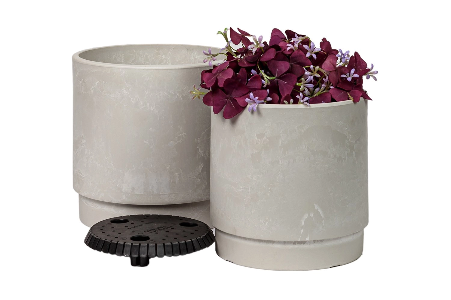 Горшок поставляется с дренажным вкладышем для контроля воды. При поливе растений излишек воды будет уходить за дренажный вкладыш и при необходимости корешки растений будут получать дополнительную влагу.