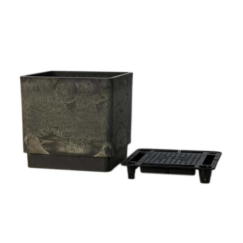 Квадратный горшок Древесный уголь для растений имеет оригинальную текстуру под камень, которая при изготовлении делается вручную. Изготовлен из прочного специализированного пластика в состав которого входит битый камень, древесная мука с полимерами. Укомплектован дренажным вкладышем для контроля воды. Условия эксплуатации: для дома и улицы при температуре от −45 до +65 градусов по Цельсию. Подлежит вторичной переработке. Подлежит сверлению (при желании можно сделать дренажные отверстия). Устойчивость к плесени, грибку, гниению и коррозии — это свойство выгодно отличает пластик от других материалов, подверженных этим процессам. Экологически безопасный. Изделия не выделяют в атмосферу и почву вредные вещества, поэтому полностью безопасны.