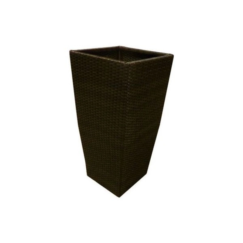 Кашпо выполнено из качественного материала, используется для высаживания растений. В качестве материала используется металл и искусственный ротанг.