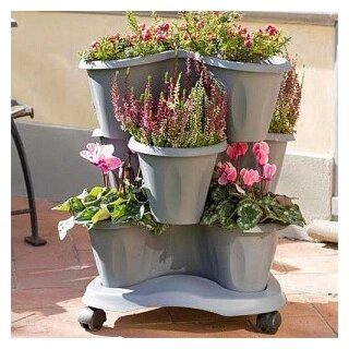 Ярусы расположены с поворотом друг относительно друга, что позволяет растениям цвести и развиваться, не мешая друг другу.