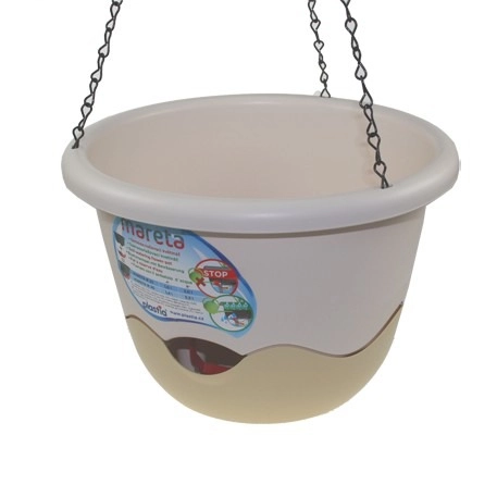 В комплект входит: дренажная решётка, фитиль, воронка для наливание воды, указатель уровня воды, цепочка для подвешивания. Дно цветочного горшка Mareta оборудовано отверстиями для проростания корней.