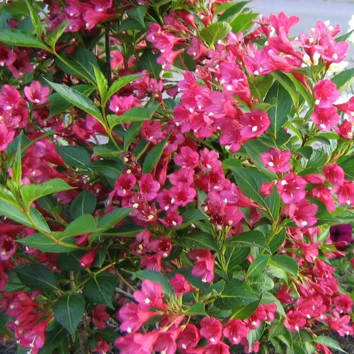 Куст 2,5-3 м высотой, до 3,5 м шириной, цветы рубиново-красные, цветение обильное, конец мая - начало июня. Не выдерживает замокания, предпочитает умерено богатые органикой почвы, при избытке может давать слабое цветение и неравномреный прирост. Хорошо переносит стрижку. Может подмеразть во время суровых зим, не выносит сквозняков.