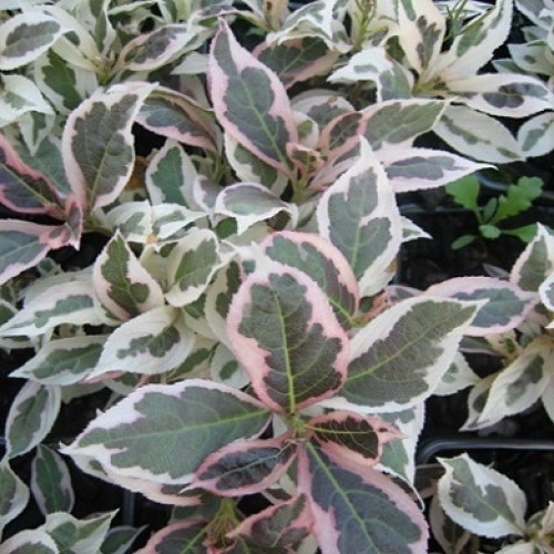 Кустарник средней величины, до 100 см высотой. Лист зеленый с розово-белой каймой. Предпочитает солнце или полутень. Цветки собираются в маленькие соцветия. Цветение - с середины мая, на протяжении 1,5-3 недель. Период цветения Май-Июнь. Растение отдает предпочтение плодородным почвам. Растение нуждается в постоянной аэрации, поэтому почву в приствольном круге нужно рыхлить регулярно. Растение следует укрыть на зиму.