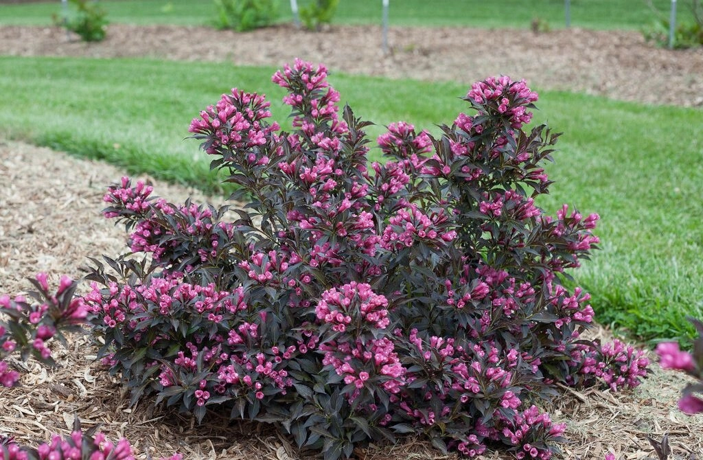 Медленнорастущий кустарник довольно раскидистой формы. Главная особенность практически всех сортов вейгел в возможности цвести два раза в год, что делает растение очень популярным среди ландшафтных дизайнеров и садоводов. Вейгела цветущая Victoria (Виктория) – небольшого роста, но побеги с возрастом становятся раскидистыми и свисающими к земле, тем самым придавая растению шаровидную форму. Листья необычного зелёно – коричневого окраса, на солнце могут «выгорать» и становится тёмными. Цвести вейгела начинает в мае и отличается высокой продолжительностью этого периода. Относительная неприхотливость в уходе, есть повторное цветение, Выбор места тоже важный момент, нужен участок с достаточным уровнем освещенности. Почва предпочтительна рыхловатая – супесчаники, суглинок подойдут, если уровень кислотности нейтральный. Слишком много влаги это растение не потребует, достаточно вводить под корень воду в период засухи. . Виктория неплохо переносит холодную зиму, но укрывать на этот период ее все же рекомендуется.