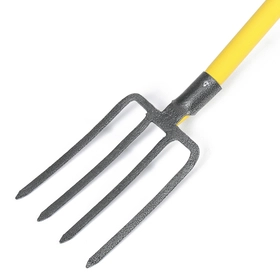 Вилы копальные 4-х рогие с желтым металлизированным черенком и V-ручкой