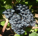 Гроздь средняя, 110-160 г. Ягода средняя, 1-1,3 г, слабоовальная, темно-синяя. Мякоть хрящеватая со специфическим терпким вкусом.