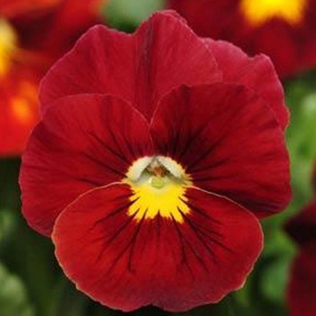 Большие красные цветки. Высота растения – 20 - 25 см. Размер цветка – 8-10 см. Желтый глазок.