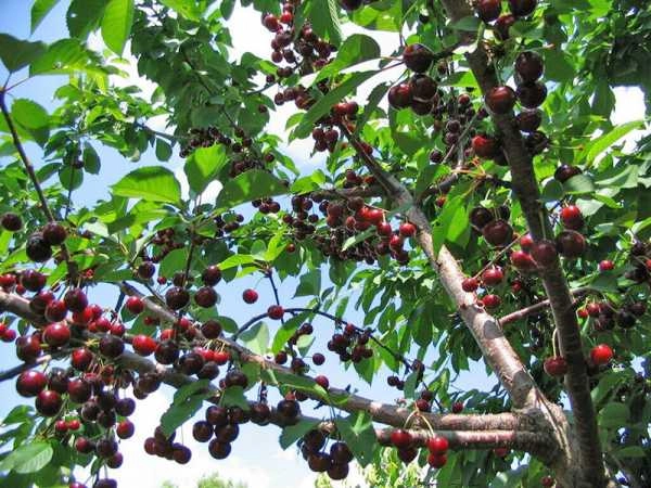 многосортовое плодовое дерево. Для выращивания таких деревьев используется основа и привой, благодаря этому получается два разных сорта вишни на одном дереве