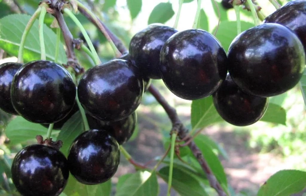 | Плоды | Плоды средней массой 5,3 г, сердцевидные, довольно сильно сплюснуты с боков. Окраска кожицы темно-вишневая, почти черная, по интенсивности окраски сорт занимает ведущее место. |