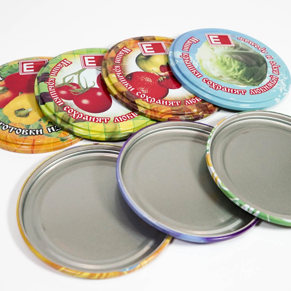 Металлическая крышка для закатки стеклянных банок с горловиной венчика типа СКО (размер 82 мм). Состав: пищевая жесть, покрытая пищевым лаком. Крышка СКО может использоваться только с применением специальной закаточной машинки.