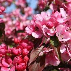 | Цветение | Бутоны малиновые, цветы простые 2,5-3 см в диаметре, малиновые или розовые, обратная сторона лепестков темнее. |